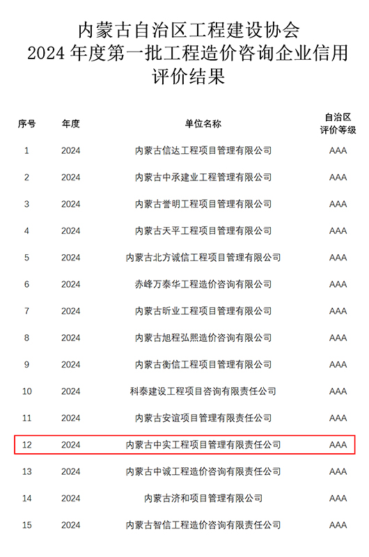 2024-07-3017140 次近期,我公司参加内蒙古自治区工程建设协会组织的“2024年度第一批工程造价咨询企业信用”申报,获得“信用AAA级证书”。我公司成立多年以来,遵循中国工程造价管理协会对造价咨询企…